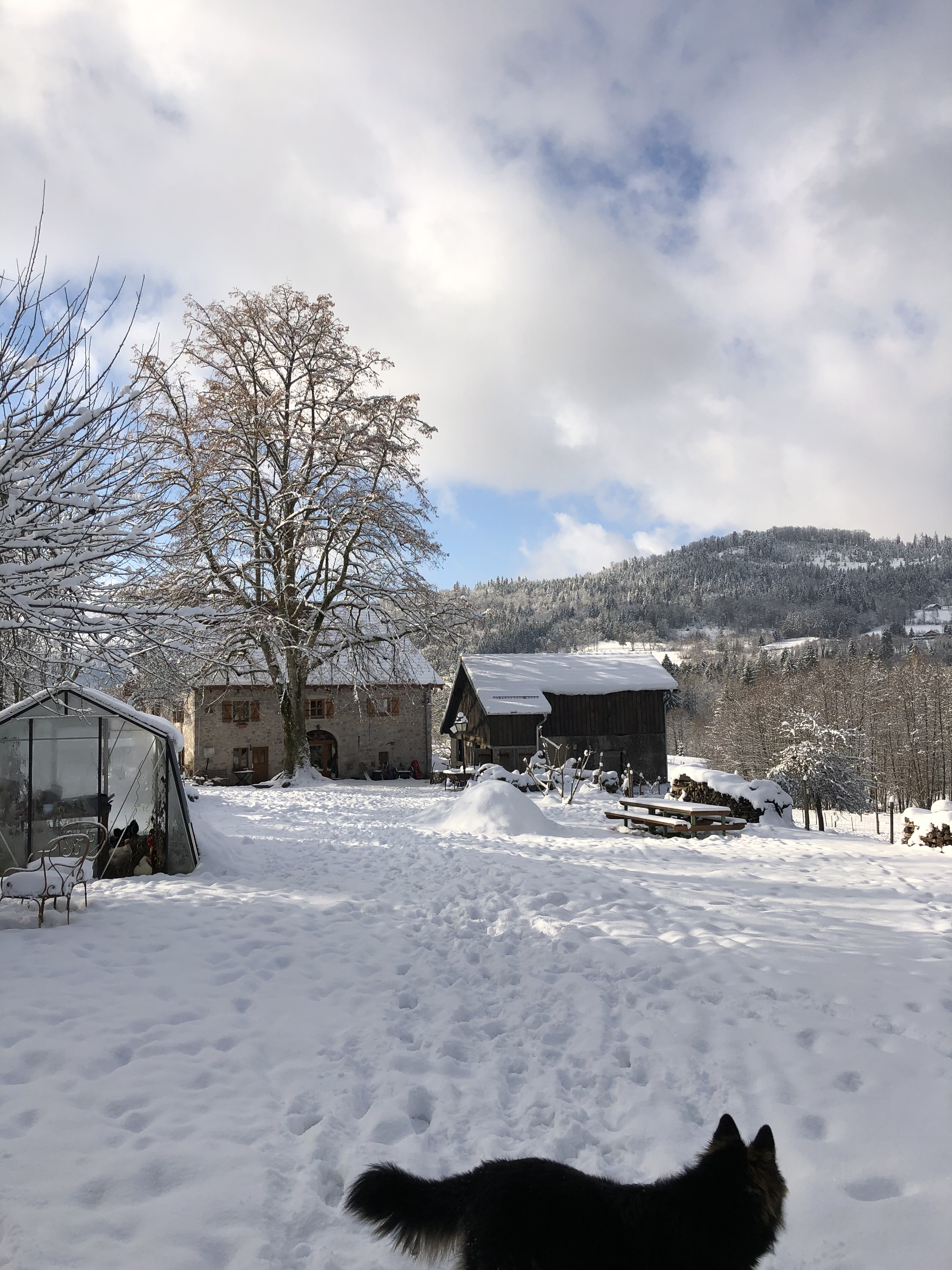 Dans notre ferme il y a de possibilité de vous servir de la cuisine. Il a une frigo a partager et la possibilité de cuisiner. Nous offrons des tables d’hôtes également, si on a du temps de le faire. Le diner est Seri dans notre jardin ou dans notre salle a manger.
